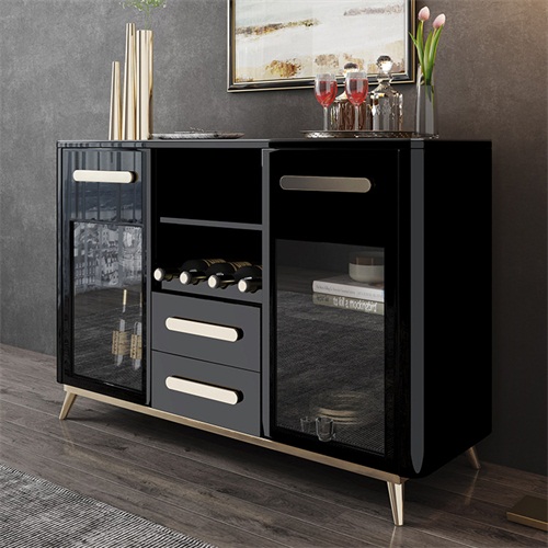 3、備餐柜左右兩邊及上部抽屜和柜門結合的封閉式空間搭配中間可上下調節(jié)的酒格設計別出心裁,增大儲物空間的同時更方便您陳列各式美酒;四個支撐腳設計,使備餐柜結構更加穩(wěn)固。