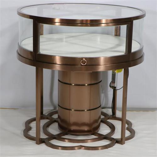 不銹鋼展柜設計定做廠家為您展示的是2020新款珠寶店周大福不銹鋼玻璃圓形柜臺-高端珠寶展柜廠