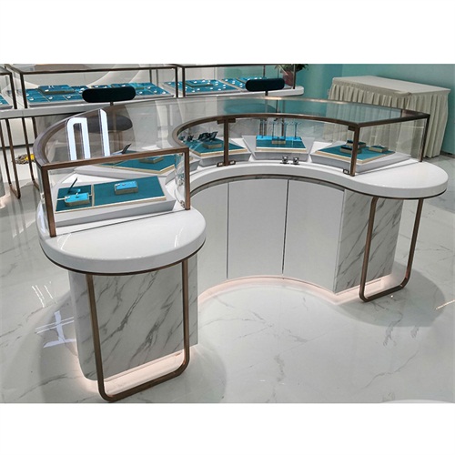 弧形不銹鋼大理石柜臺展示柜_輕奢不銹鋼玻璃展柜