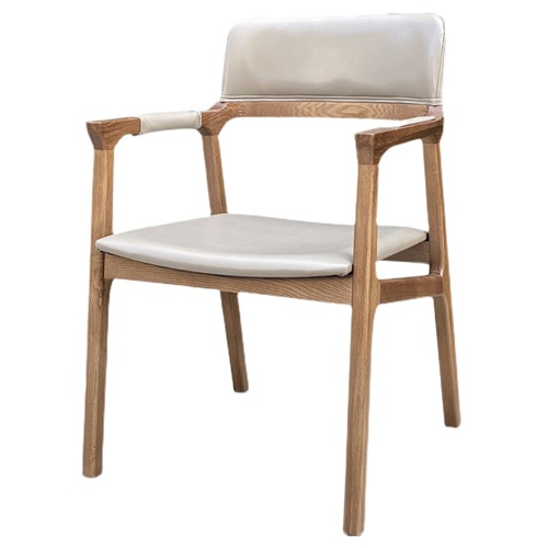 餐廳家具廠家為您展示咖啡廳飲品店白蠟?zāi)緦?shí)木皮革軟包餐椅扶手
