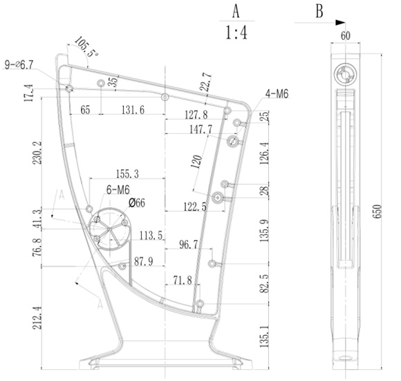 鋁合金站腳尺寸及工藝技術(shù)要求: