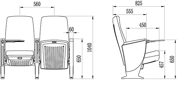 2.座椅基本中心距為560±5mm,座包打開側(cè)深780±5mm,寫字板打開側(cè)深825±5mm,基本椅高為1040±5mm,最小排距:900mm。通過相關(guān)家具產(chǎn)品質(zhì)量檢驗中心QB/T2602-2013《影劇院公共座椅》的相關(guān)檢測依據(jù),甲醛釋放量≤0.120mg/m3h;抗引燃特性符合GB 17927.1-2011中的要求。