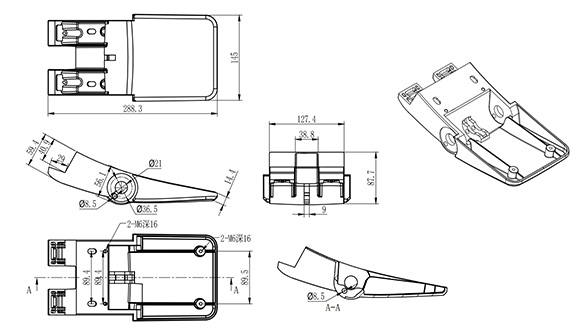 12.站腳:托板采用優(yōu)質(zhì)鋁合金材料經(jīng)模具一體壓鑄成型,腳管采用優(yōu)質(zhì)方管,腳筒為優(yōu)質(zhì)鋼板,經(jīng)模具壓制后用二氧化碳焊接成型,外形為單腳下通風(fēng)結(jié)構(gòu)裝置,表面經(jīng)過除銹、清洗、氧化、烘干、靜電、高溫、靜噴亞光黑處理,尺寸規(guī)格:長度為495±2mm,寬度為285±2mm,高度為300±2mm。