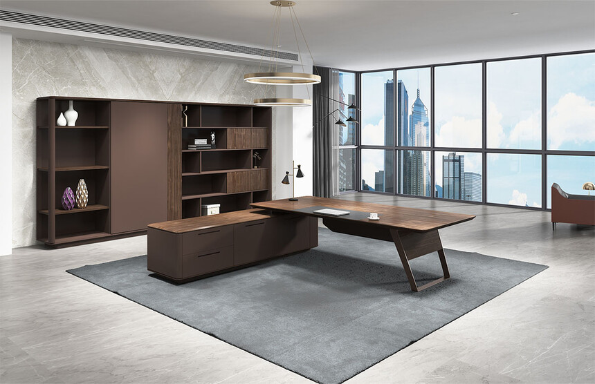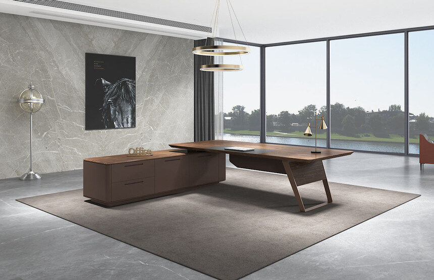 以高標準的原木質感的油漆加持,賦予了主管桌一種沉著內(nèi)斂的特性,讓每一次商務洽談變得簡單從容。