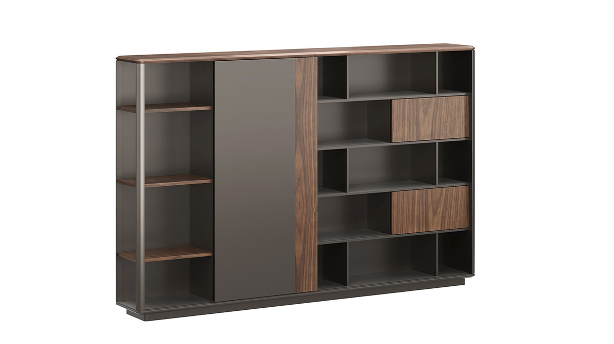 極致辦公系列,秉承華旦的時尚優(yōu)雅的品牌基因,以直線中穿插多維弧度的造型語意,將天然的半開放胡桃木紋與金屬的質感有機組合,盡顯原木風情與利落高效。